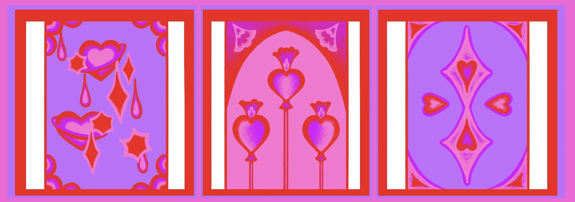…with these out of this world visuals! I’ve got heart eyes for this cute catalog, combining purple, pink, and red into six hearty designs. How royally romantic!